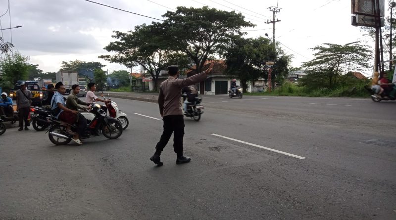 Anggota Polsek Pangenan PH pagi di pertigaan Desa Ender Kecamatan Pangenan