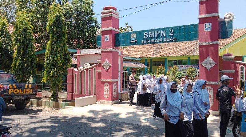 Jajaran Personil Polsek Susukan lebak Polresta Cirebon melaksanakan Gatur Lalu lintas pagi di Jalan raya Susukan lebak depan SMPN2 Susukan lebak Ds. Susukan agung Kec. Susukan lebak Kab. Cirebon.