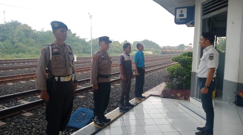 antisipasi keramaian arus balik menggunakan kereta api, polsek Lemahabang laksanakan pengamanan di  stasiun kereta api sindanglaut, – Dakhura