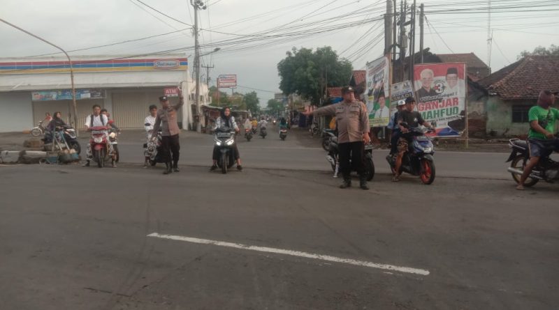 Jajaran Polsek Susukan Polresta Cirebon Polda Jabar, melaksanakan Gatur Lalu lintas pagi di perempatan bunder Kec Susukan Kab Cirebon.