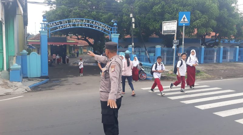 Personil Polsek Plered melaksanakan Gatur Lalu lintas pagi di Jln. Otista tepatnya depan SDN 3 Tegalsari dan SMP N 2 Plered Ds. Tegalsari Kecamatan Plered Kabupaten Cirebon.