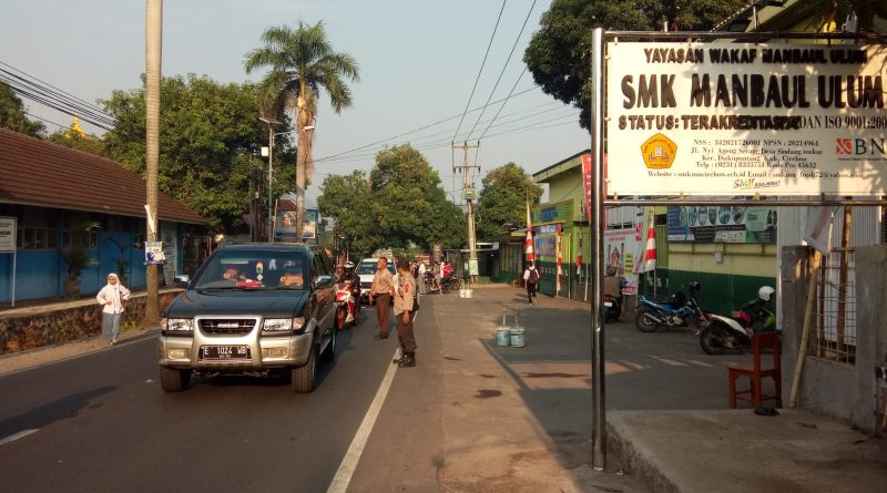 Bentuk Pelayanan Masyarakat, Polsek Dukupuntang Polresta Cirebon Laksanakan Giat Rutin PH Pagi Di Depan SMK Manba’ul ‘Ulum Sindangmekar