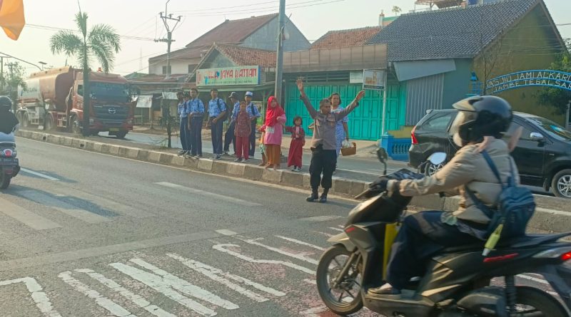 Jajaran Personil Polsek Plered Polresta Cirebon Polda Jabar, melaksanakan Gatur Lalu lintas pagi di Jaln Raya Palimanan – Cirebon tepatnya di depan SDN3 Tegalsari dan di depan SMK Nusantara Ds. Panembahan Kec Plered Kab Cirebon.