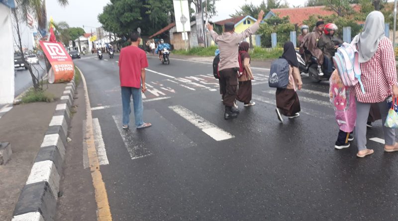 Personil  Polsek Plered  melaksanakan Gatur Lalu lintas pagi di Jln. Otista tepatnya depan SDN 3 Tegalsari dan SMP N 2 Plered Ds. Tegalsari Kecamatan Plered Kabupaten Cirebon.