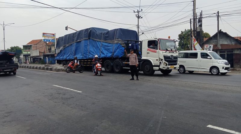 Jajaran Personil Polsek Susukan Polresta Cirebon Polda Jabar, melaksanakan Gatur Lalu lintas pagi di perempatan bunder Kec Susukan Kab Cirebon.
