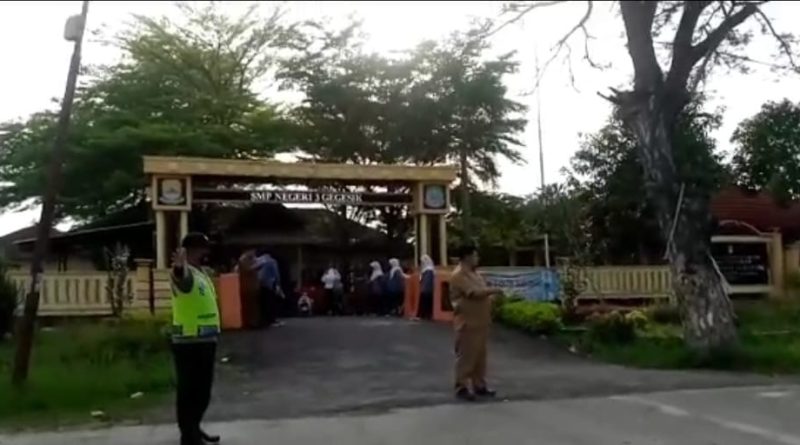 Berikan pelayanan kepada masyarakat di pagi hari Polsek Gegesik melaksanakan pengaturan lalu lintas di depan smpn 3 Gegesik