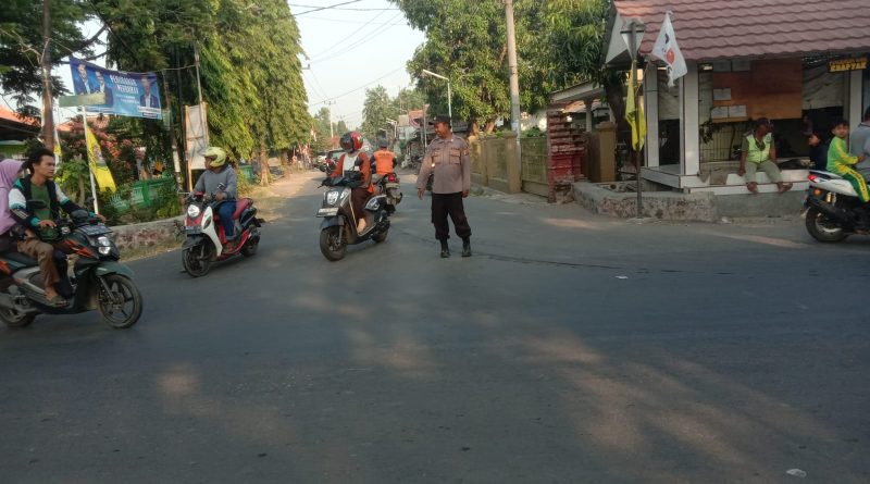 Berikan pelayanan kepada masyarakat di pagi hari polsek gegesik polresta cirebon melaksanakan pengaturan lalu lintas di depan smpn 3 Gegesik