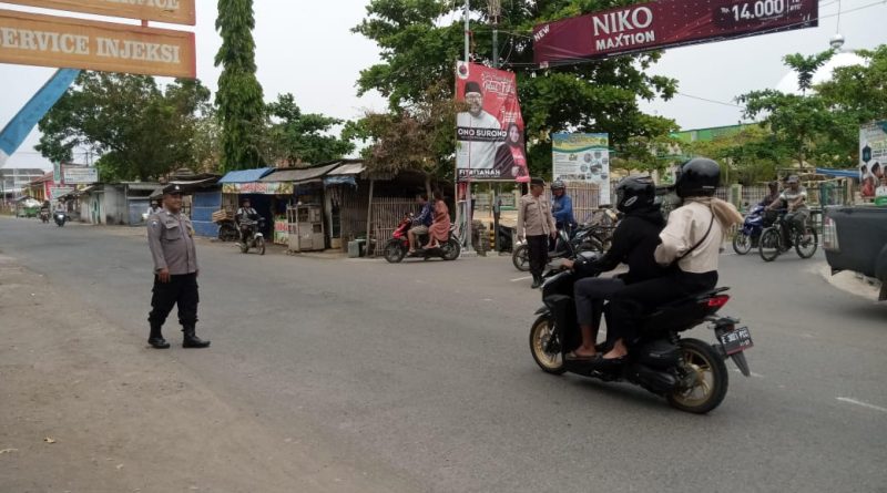 Berikan pelayanan kepada masyarakat di pagi hari polsek gegesik Polresta Cirebon melaksanakan pengaturan lalu lintas di depan smpn 3 Gegesik