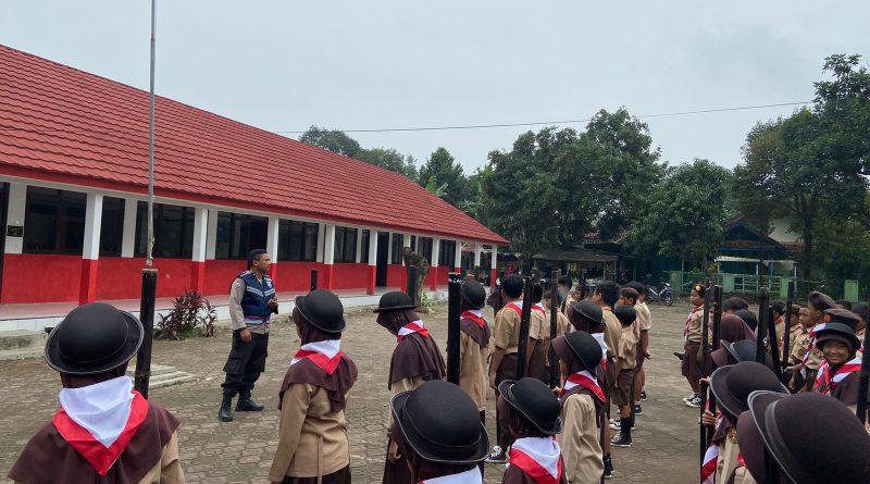 Bhabinkamtibmas Kel Sumber Polsek Sumber Polresta Cirebon Aipda Kata menyambangi anak-anak SDN 5 Sumber di Kel Sumber Kecamatan Sumber Kabupaten Cirebon.