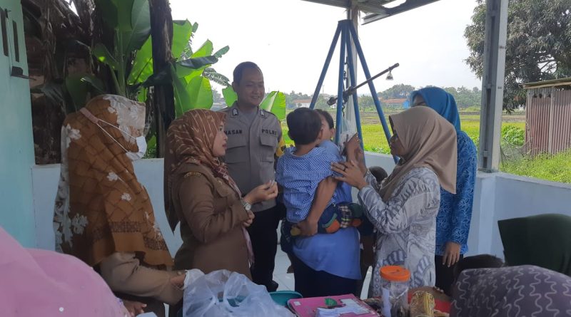 Bhabinkamtibmas Desa Cilukrak Polsek Gempol Polresta Cirebon monitoring Bulan Imunisasi Anak Nasional (BIAN) di Posyandu Anggrek