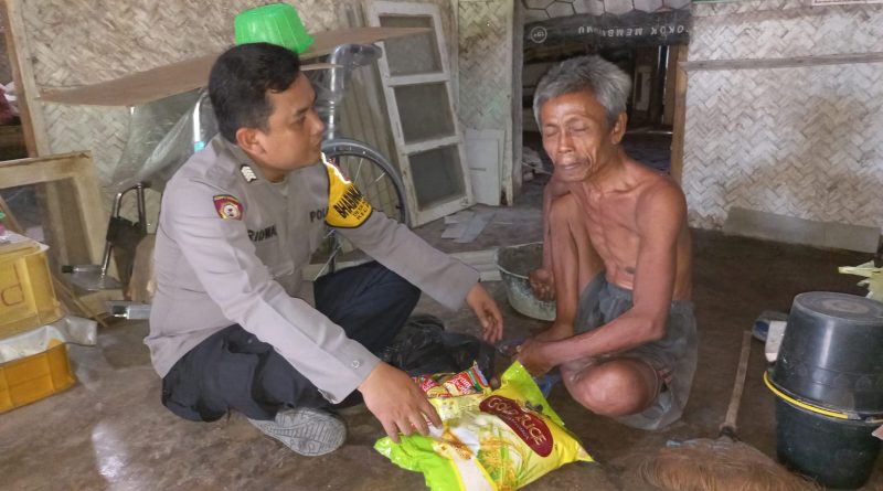 Bhabinkamtibmas desa Kudumulya Polsek Babakan Polresta Cirebon berikan bantuan sembako pada warga desa binaan. – Dakhura