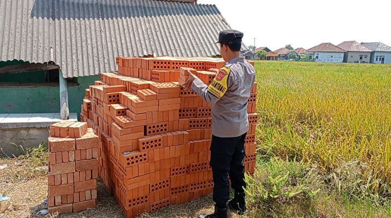 Bhabinkamtibmas Desa Rawagatel peduli Desa Binannya dengan kerja bakti membuat gapura desa.