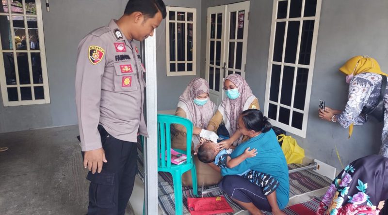 Bhabinkamtibmas Polsek Babakan Polresta Cirebon Monitoring dampingi Bidan desa laksanakan Pin polio balita warga desa binaan. – Dakhura