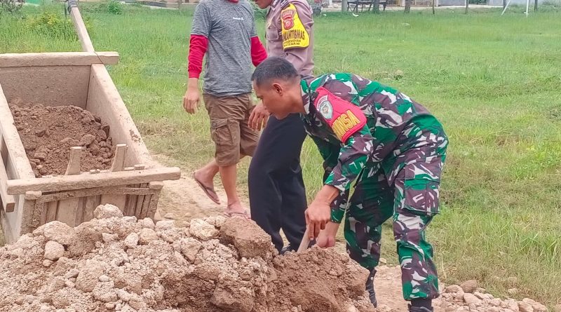 Bhabinkamtibmas Polsek pangenan Polresta Cirebon Dan Babinsa Ikut Gotong Royong Bersama Masyarakat Desa Getrakmoyan Kecamatan Pangenan kabupaten Cirebon.