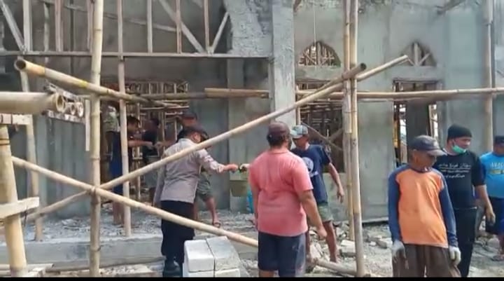Bhabinkantibmas Desa Kebonturi Polsek Arjawinangun Polresta Cirebon bersama Babinsanya ikut bergotong royong bangun masjid.