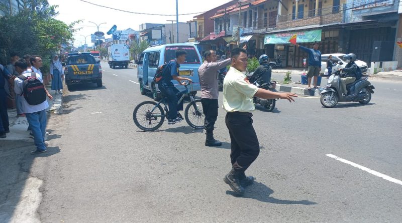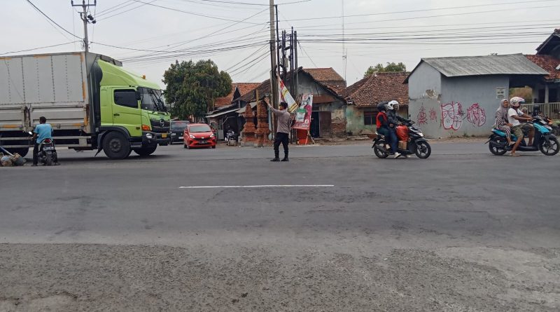 Cegah kemacetan dan tawuran pelajar, Polsek Lemahabang Polresta Cirebon atur lalu lintas di pertigaan Desa Cipeujeuh Wetan