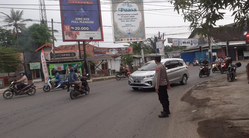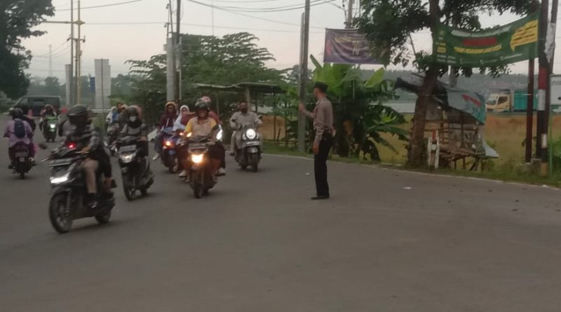 Cegah Kemacetan Arus Lalin, Personil Pos Pam Dukupuntang Polsek Dukupuntang Polresta Cirebon Laksanakan Pengaturan Arus Lalin