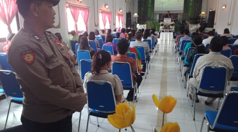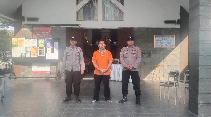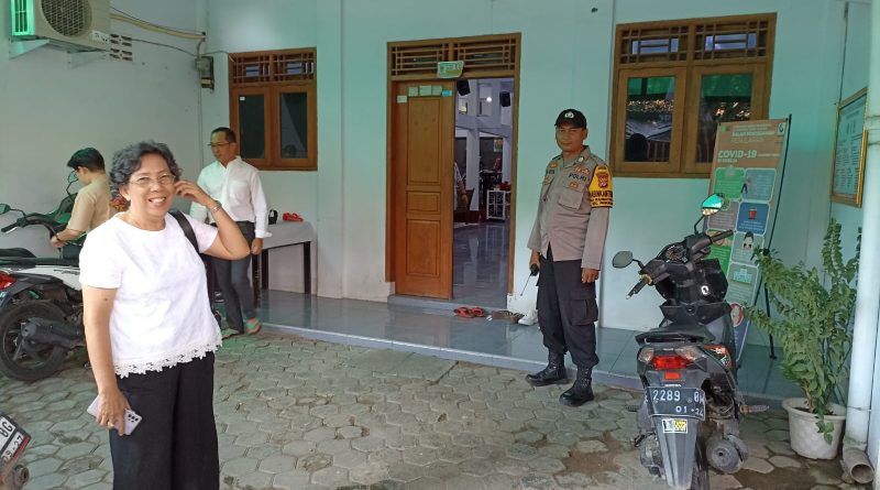 Anggota Polsek Pabuaran Polresta Cirebon melaksanakan kegiatan pengamanan misa paskah Minggu pagi di gereja Santo teresia Ciledug paskah kristus (GKPK ) Desa Jatiseeng Kecamatan Ciledug Kabupaten Cirebon