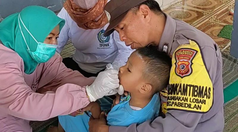Bhabinkamtibmas Polsek Ciwaringin Polresta Cirebon Monitoring Sub Pin – Sub Pekan Imunisasi Nasional Polio Serentak,Peduli Kesehatan Balita untuk mendukung Program Pemerintah.