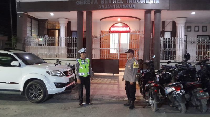 KAB. CIREBON – Cegah gangguan Kamtibmas pada malam hari Polsek Arjawinangun Polresta Cirebon melaksanakan pengamanan kebaktian ibadah Raya 2 di gereja GBI Arjawinangun, adapun dalam kegiatan tersebut untuk memberikan rasa aman kepada umat Nasrani yang sedang melaksanakan kebaktian ibadah Raya 2.
