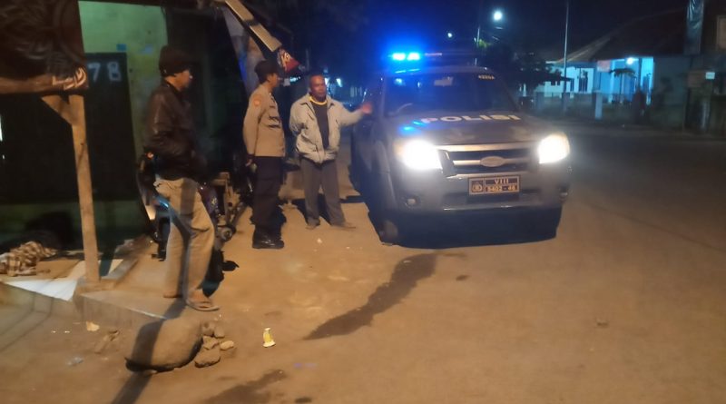 Giat Kepolisian dlm rangka cegah tangkal gangguan Kamtibmas, antisipasi C3, Genk motor dan tawuran menyampaikan himbauan kamtibmas dan mengajak berperan aktif memberikan informasi kamtibmas  kepada warga dan anak-anak  muda yang nongkrong agar segera  membubarkan diri .