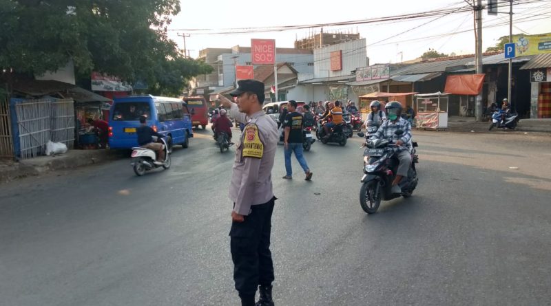 Cegah kemacetan hingga antisipasi tawuran pelajar, Polsek Lemahabang atur lalu lintas di pertigaan Cipeujeuh pada jam sibuk pagi. – Dakhura