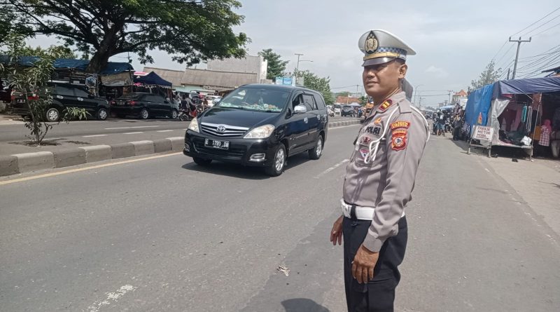 Ciptakan aman lancar Panit Lantas Polsek Arjawinangun gatur lantas di pasar sandang Tegalgubug.