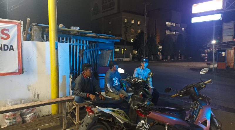 Giat Kepolisian dlm rangka cegah tangkal gangguan Kamtibmas, antisipasi C3, Genk motor dan tawuran menyampaikan himbauan kamtibmas dan mengajak berperan aktif memberikan informasi kamtibmas kepada warga dan anak-anak muda yang nongkrong agar segera membubarkan diri .