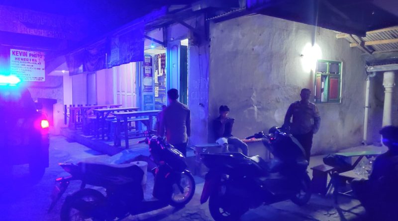 Giat Kepolisian dlm rangka cegah tangkal gangguan Kamtibmas, antisipasi C3, Genk motor dan tawuran menyampaikan himbauan kamtibmas dan mengajak berperan aktif memberikan informasi kamtibmas kepada warga dan anak-anak muda yang nongkrong agar segera membubarkan diri .