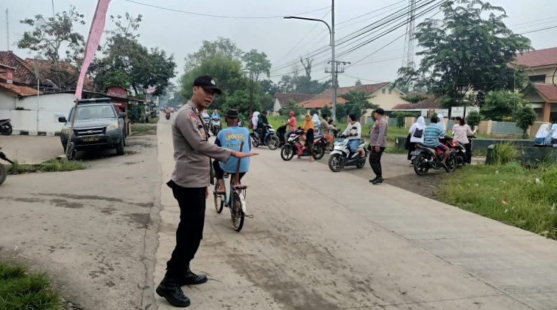 Gatur pagi polisi Polsek Kaliwedi Polresta Cirebon berikan keamanan kepada masyarakat dan pelajar.