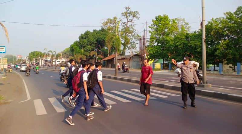 Jajaran Personil Polsek Plered Polresta Cirebon Polda Jabar, melaksanakan Gatur Lalu lintas pagi di Jaln Raya Palimanan – Cirebon tepatnya di depan SDN3 Tegalsari dan di depan SMK Nusantara Ds. Panembahan Kec Plered Kab Cirebon.