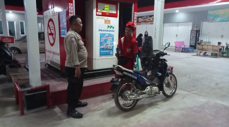 Giat Kanit Binmas Aiptu Eko Hapsoro dialogis dengan karyawan SPBU Desa Bojong kulon Kecamatan Susukan