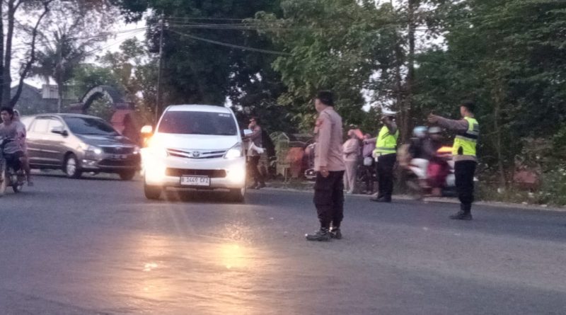 Guna beri rasa aman dan lancar kepada pemudik anggota pos Pam Jungjang Polresta Cirebon mengalihkan arus lalin ke jalur Alternatif Ciwaringin – Dakhura