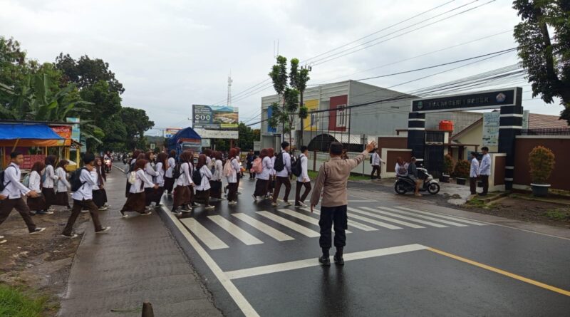 Selain mengatur arus lalu lintas, Aiptu Dodi S. juga tampak membantu para siswa SMAN 1 Beber saat menyeberang jalan. Sikap humanis tersebut menjadi bagian dari upaya Polri dalam membangun kedekatan serta meningkatkan kepercayaan publik melalui pelayanan langsung di lapangan.