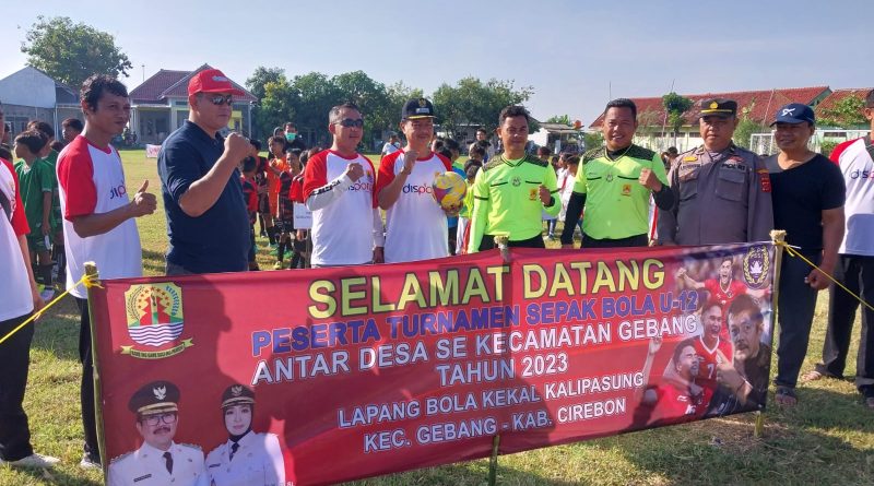 KANIT BINMAS POLSEK GEBANG POLRESTA CIREBON MEMBUKA TURNAMEN SEPAK BOLA USIA 12 TAHUN DI DESA KALIPASUNG