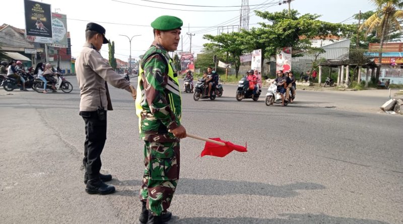 Kapolsek Arjawinangun bersama anggota TNI Gatur Arus Mudik di Lamer Jungjang guna beri rasa aman dan nyaman.