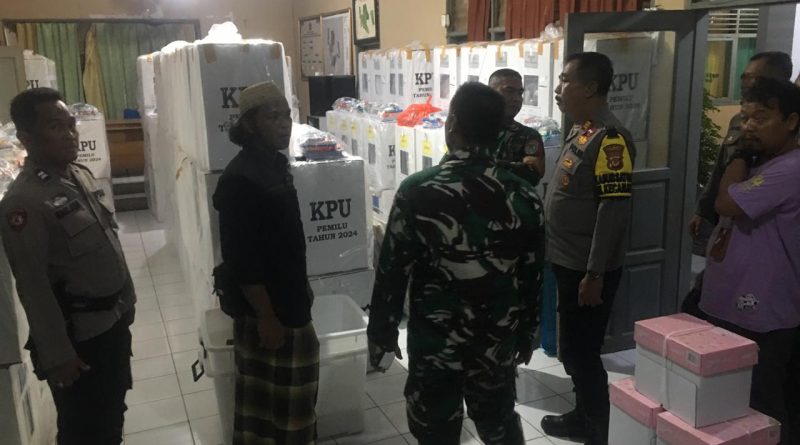 Arjawinangun, Mewujudkan pemilu 2024 aman damai, Kapolsek Arjawinangun AKP.Zunairi SH.M.Si bersama Danramil 2019 Arjawinangun Kapten arh. Jumadi melaksanakan giat pengecekan Logistik Pemilu 2024 dan kesiapan pungut Suara Pemilu 2024, bertempat didesa Tegalgubug, adapun untuk TPS Desa Tegalgubug berjumlah 33 TPS, dan sudah tahap penyelesaian sedangkan masing-masing TPS sudah berdiri dan untuk logistik masih tersimpan di PPS dalam keadaan aman serta di jaga oleh anggota yang terseprint PAM TPS beserta Bhabinkamtibmas, Babinsa dan Linmas untuk pergeseran logistik.