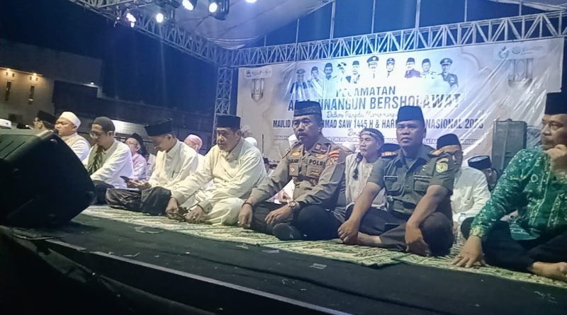 Kapolsek Arjawinangun Polresta Cirebon menghadiri Kegiatan peringatan Maulid Nabi Muhammad Saw dan hari santri nasional tahun 2023 Desa Tegalgubug lor – Dakhura