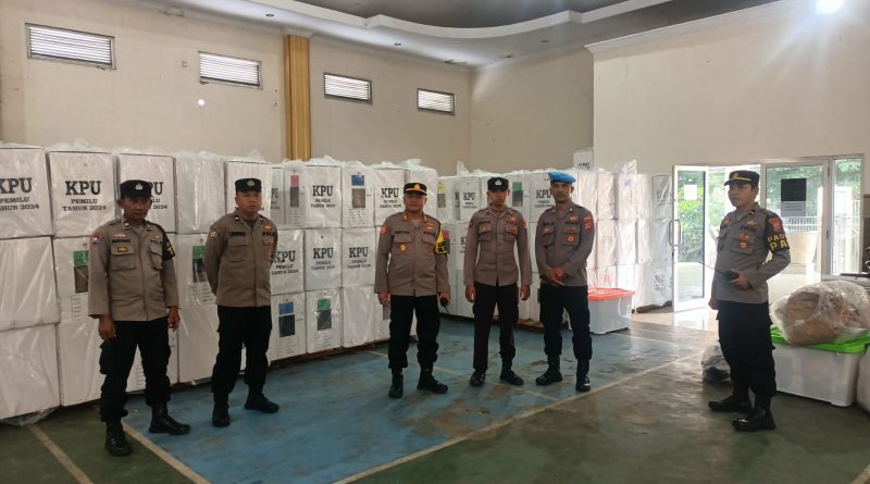 Kapolsek Dukupuntang Bersama Anggota Lakukan Pengamanan Di Gudang Logistik Pemilu Ta. 2024 PPK Dukupuntang