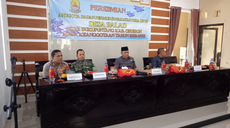 Peresmian Anggota Badan Permusyawaratan Desa (BPD) Desa Balad Kecamatan Dukupuntang Kabupaten Cirebon tersebut dilaksanakan untuk menindaklanjuti Surat Keputusan Bupati Cirebon Nomor : 141.2/Kep.739-DPMD/2022, Tanggal 30 Desember 2022, Tentang Peresmian Anggota BPD Desa Balad Kecamatan Dukupuntang Kabupaten Cirebon.