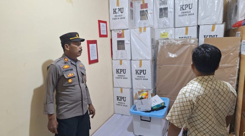Kapolsek bersama Ka. SPK Bripka Arif Sugito melaksanakan pengecekan dan kontrol gudang logistik Pemilu 2024 di ruang penyimpanan logistik Pemilu 2024 yang berada di ruang penyimpanan logistik PPS Desa-desa sekecamatan Sedong dan memastikan keamanan logistik Pemilu 2024 tersebut.
