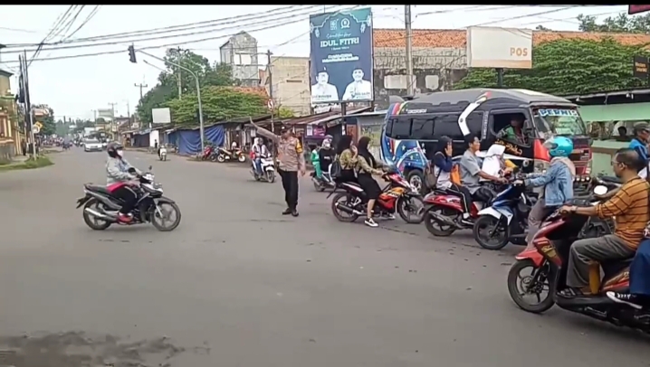 Gatur pagi hari dilaksanakan oleh anggota Polsek Pabuaran Polresta Cirebon,Polda Jabar, untuk membantu. masyarakat dan anak pelajar serta pengguna jalan lainya yang akan menyebrang jalan.