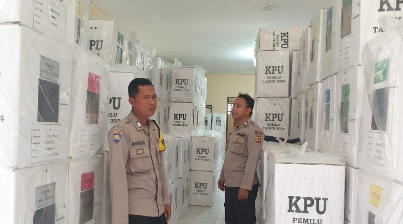Plered – Dalam Rangka mengamankan Logistik di Kantor PPK Kec. Plered Anggota Polsek Plered Polresta Cirebon Bripka Agus Sumardi dan Briptu Rio Sadewo SH, melaporkan Kesiapsiagaan melaksanakan PAM Gudang Logistik Pemilu Th. 2024 / Kantor PPK Kecamatan Plered, untuk mewujudkan Pemilu yang Berkualitas serta menciptakan situasi Wilayah Kecamatan Plered yang Aman Kondusif.