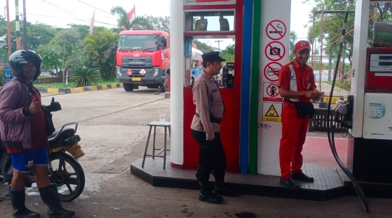 dialogis dengan karyawan Spbu Desa Bendungan Kecamatan Pangenan sampaikan pesan Kamtibmas, Selasa, (20/02/2024)