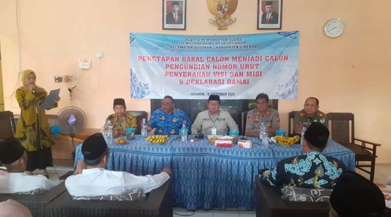 Cirebon – Tepatnya di Balai Ds. Jatianom Kec. Susukan Kab. Cirebon dilaksanakan kegiatan Pengumuman Dan Penetapan Calon Kuwu Ds. Jatianom (18/09/2023 ).