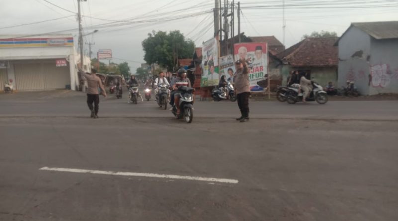 Jajaran Personil  Polsek Susukan Polresta Cirebon Polda Jabar, melaksanakan Gatur Lalu lintas pagi di perempatan bunder Kec  Susukan Kab Cirebon.