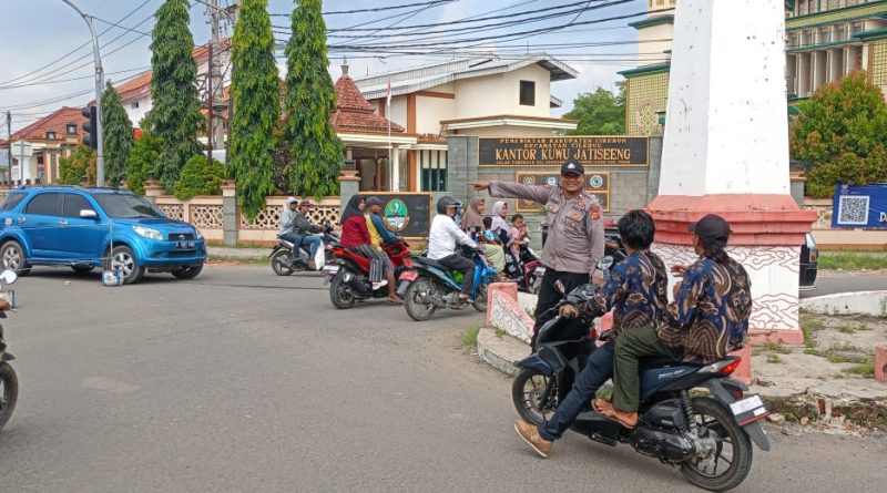 Operasi Ketupat Lebaran, Anggota Polsek Susukan lebak Polresta Cirebon melaksanakan Gatur Lalin arus mudik di Pos PAM Ciledug.
