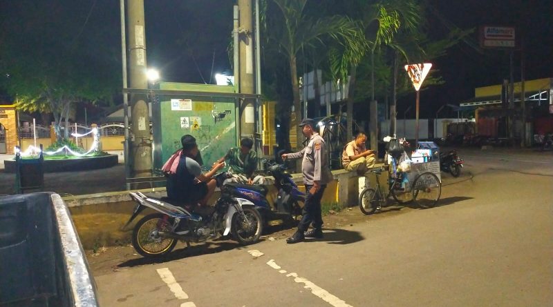 Giat Kepolisian dlm rangka cegah tangkal gangguan Kamtibmas, antisipasi C3, Genk motor dan tawuran menyampaikan himbauan kamtibmas dan mengajak berperan aktif memberikan informasi kamtibmas  kepada warga dan anak-anak  muda yang nongkrong agar segera  membubarkan diri .