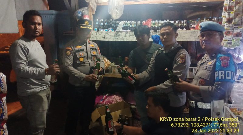Kali ini kegiatan Ops KRYD zona barat 2 bertempat di Polsek Gempol – Polresta Cirebon dipimpin langsung Oleh Kapolsek Gempol Kompol MUNAWAN S.H berhasil mengamankan minuman keras sebanyak 15 (11 botol kecil dan 4 botol besar jenis ciu) serta 9 (sembilan) botol besar jenis beer/bir.