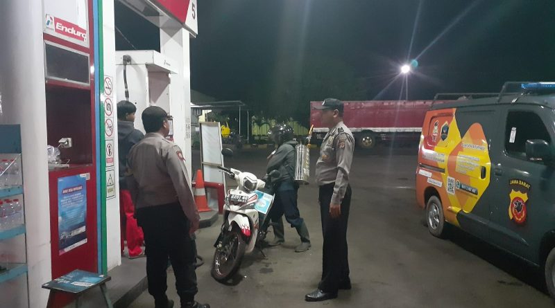 Patroli Malam Polsek pangenan Polresta Cirebon anggota jaga Dialogis dengan karyawan Spbu Desa Bendungan kecamatan Pangenan.